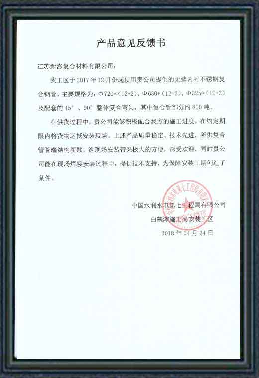 白鶴灘水電站位于四川省寧南縣和云南省巧家縣境內(nèi),總投資1800億元,我司供貨規(guī)格為:DN300、DN500、DN600、DN700,內(nèi)襯不銹鋼無(wú)縫管及管件。總共貨量超過(guò)2500噸(供貨時(shí)間:2017、2018、2019)。