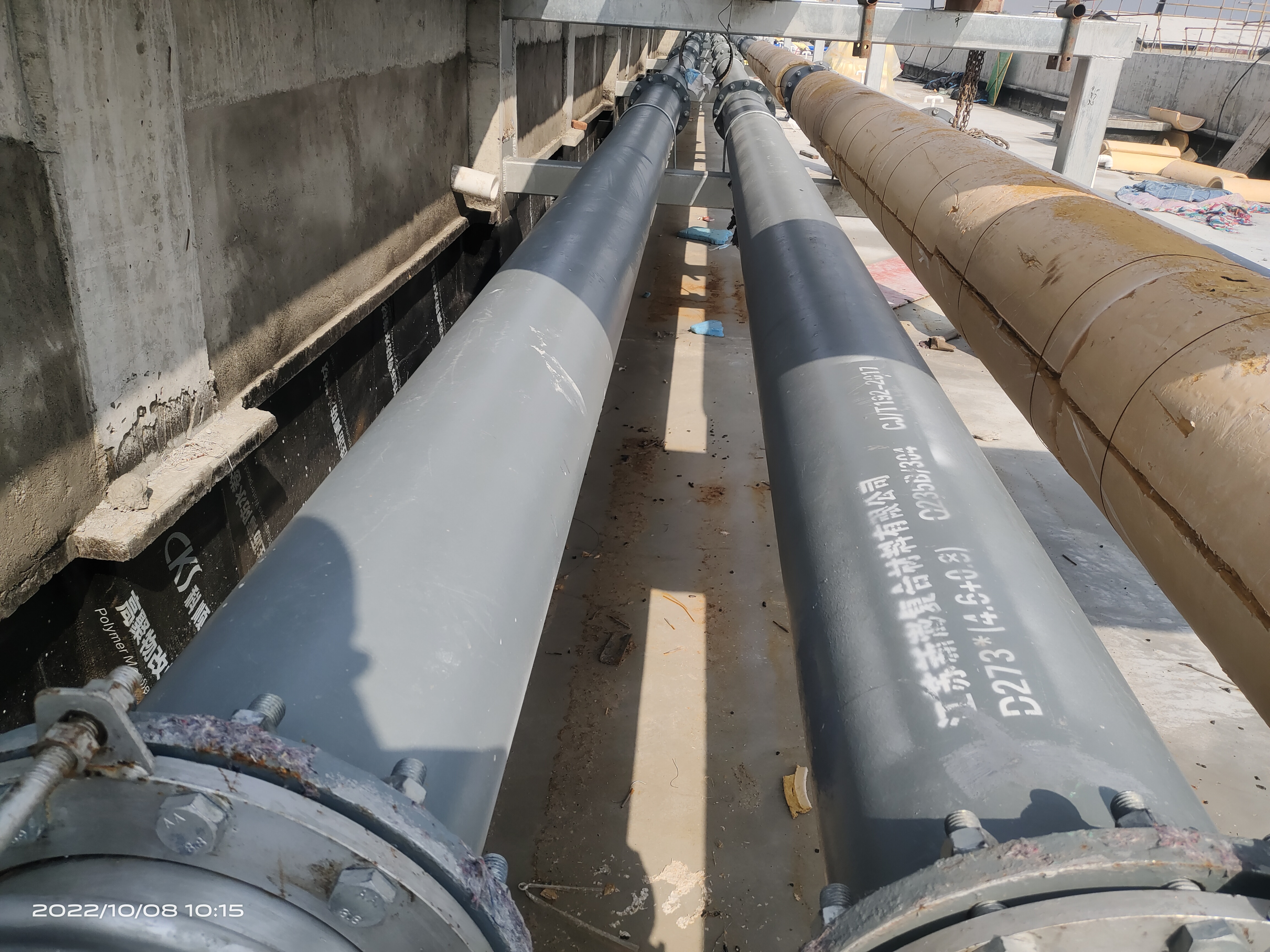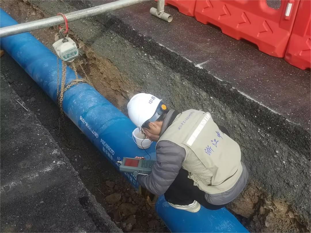 近期,杭州多地區(qū)的飲水管道項目,采用江蘇新澎復合材料有限公司生產的內襯不銹鋼復合管,規(guī)格涵蓋DN200/300/400/600,總長近20KM。新澎公司不僅提供管道、管件,同時提供現(xiàn)場焊接安裝工作,圖為我司產品焊接完成后,接受第三方檢測公司對焊縫進行檢測。檢測結果均合格。